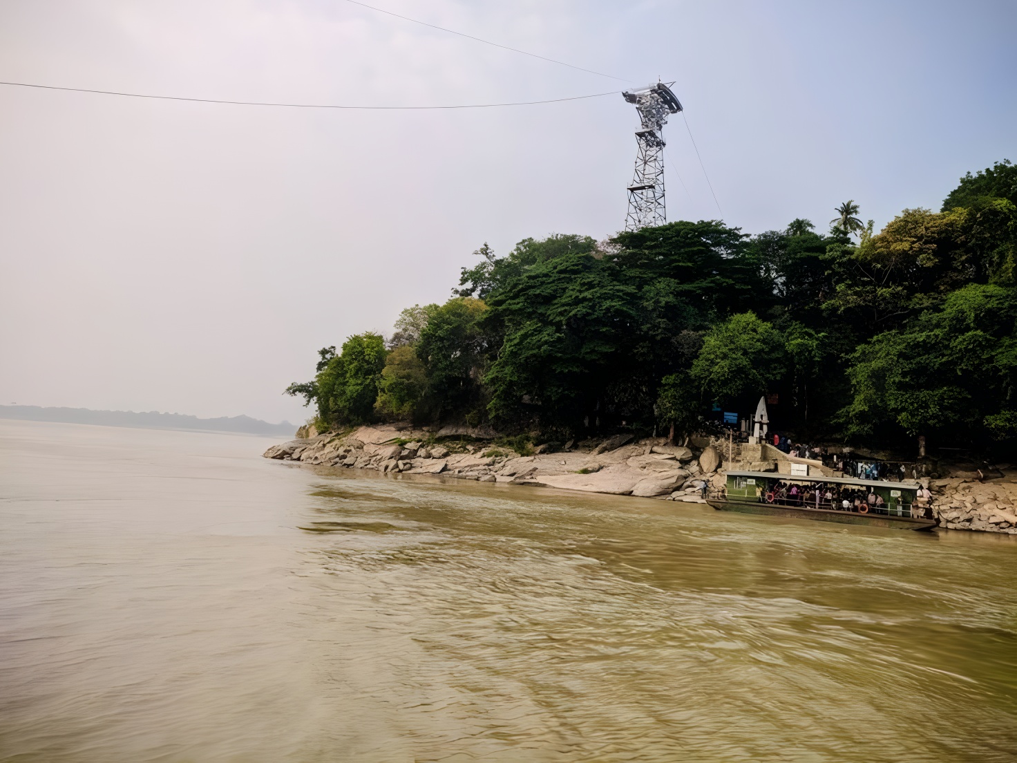 Scenic ferry ride across the Brahmaputra River.
